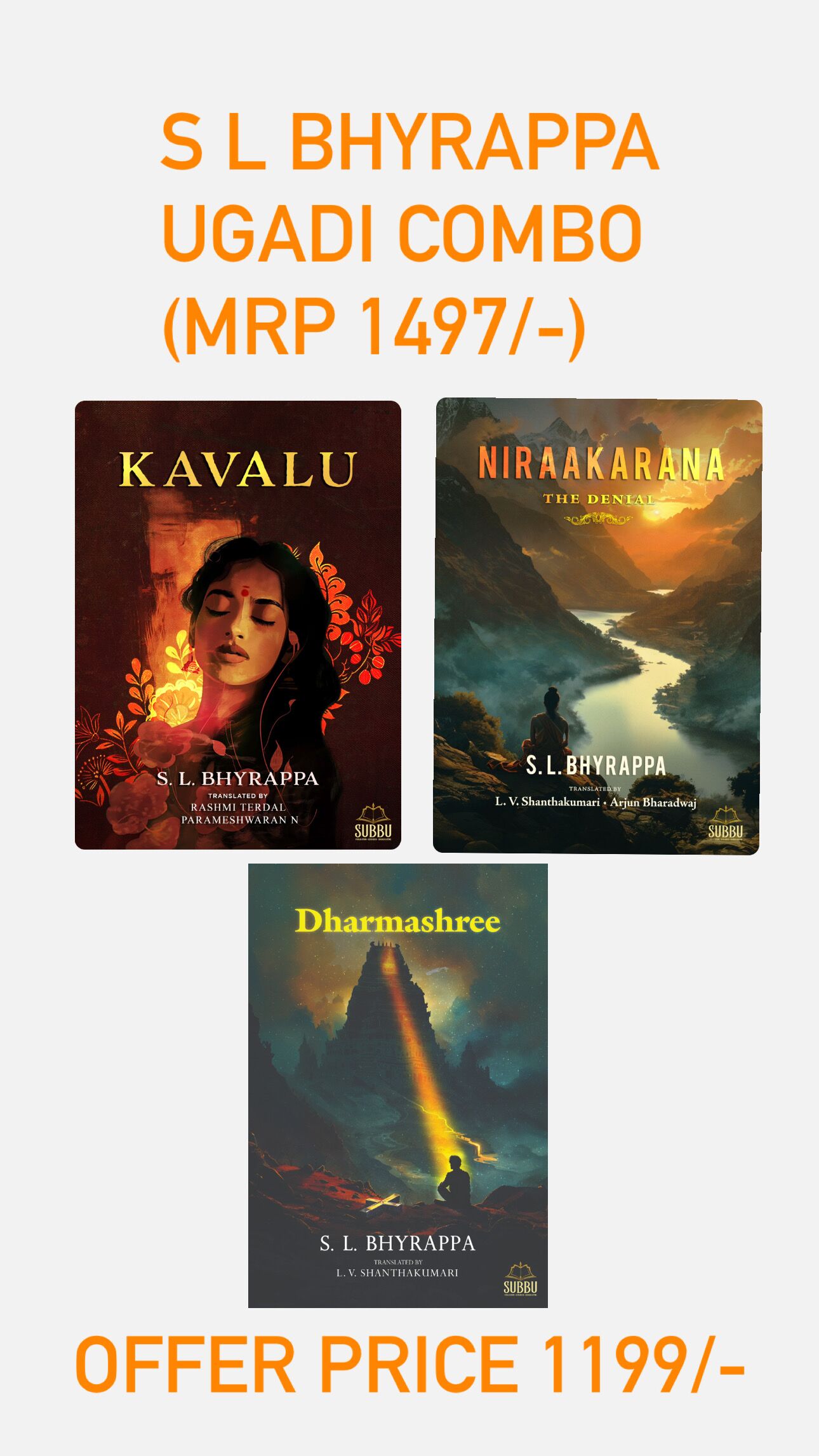 20% Flat Combo offer on the 3 upcoming books of Giant Genius Shri SL Bhyrappa at just 1199/- (MRP 1497/-)